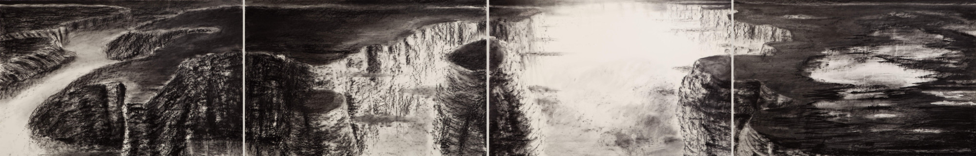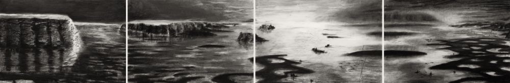 Charcoal, Crayon and Spray paint on paper. Consists of 4 parts
