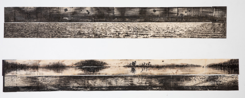 no 1: charcoal and crayon on paper 150 x 290 cm no 2: charcoal and crayon on paper 150 x 220 cm
