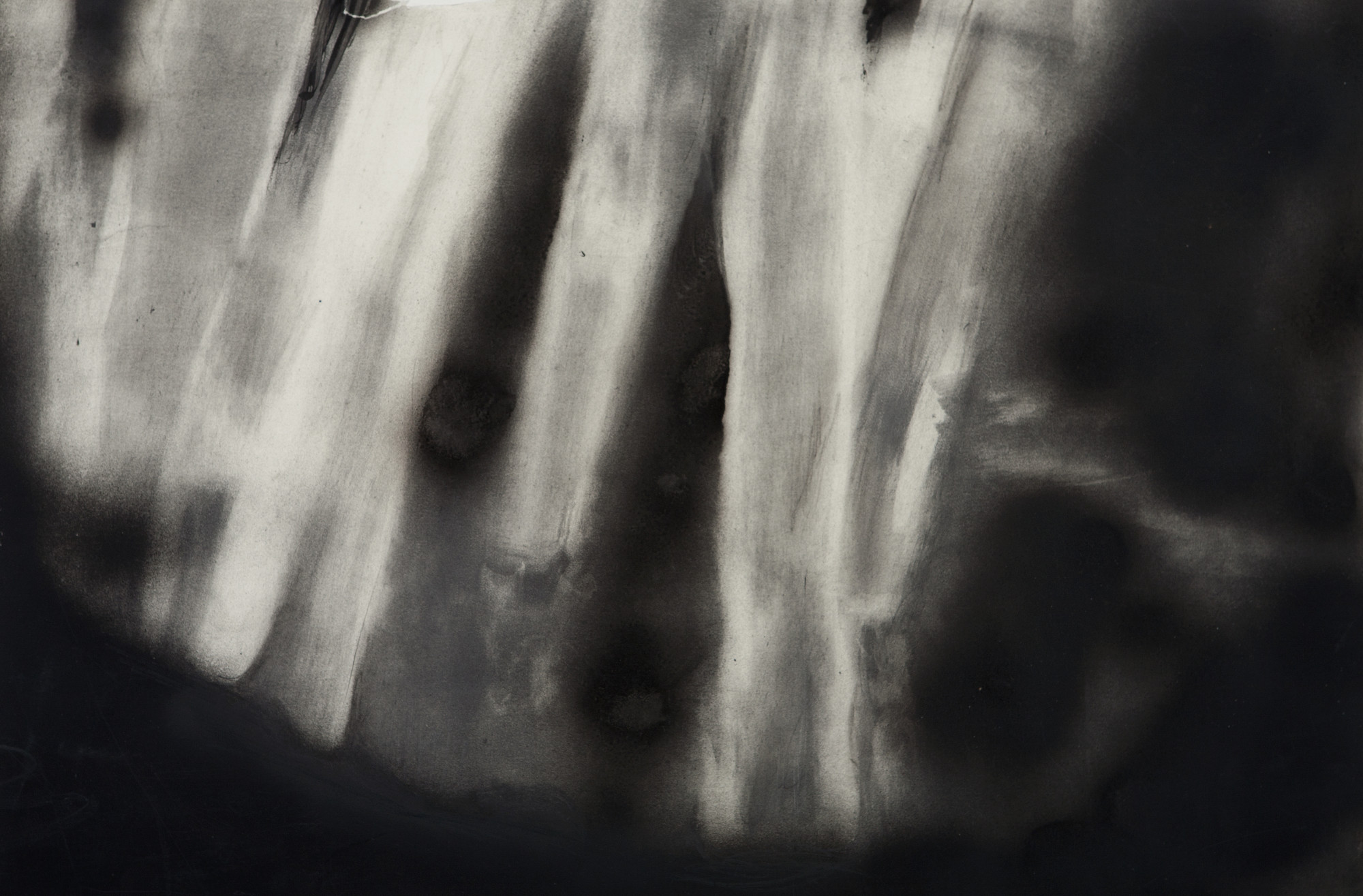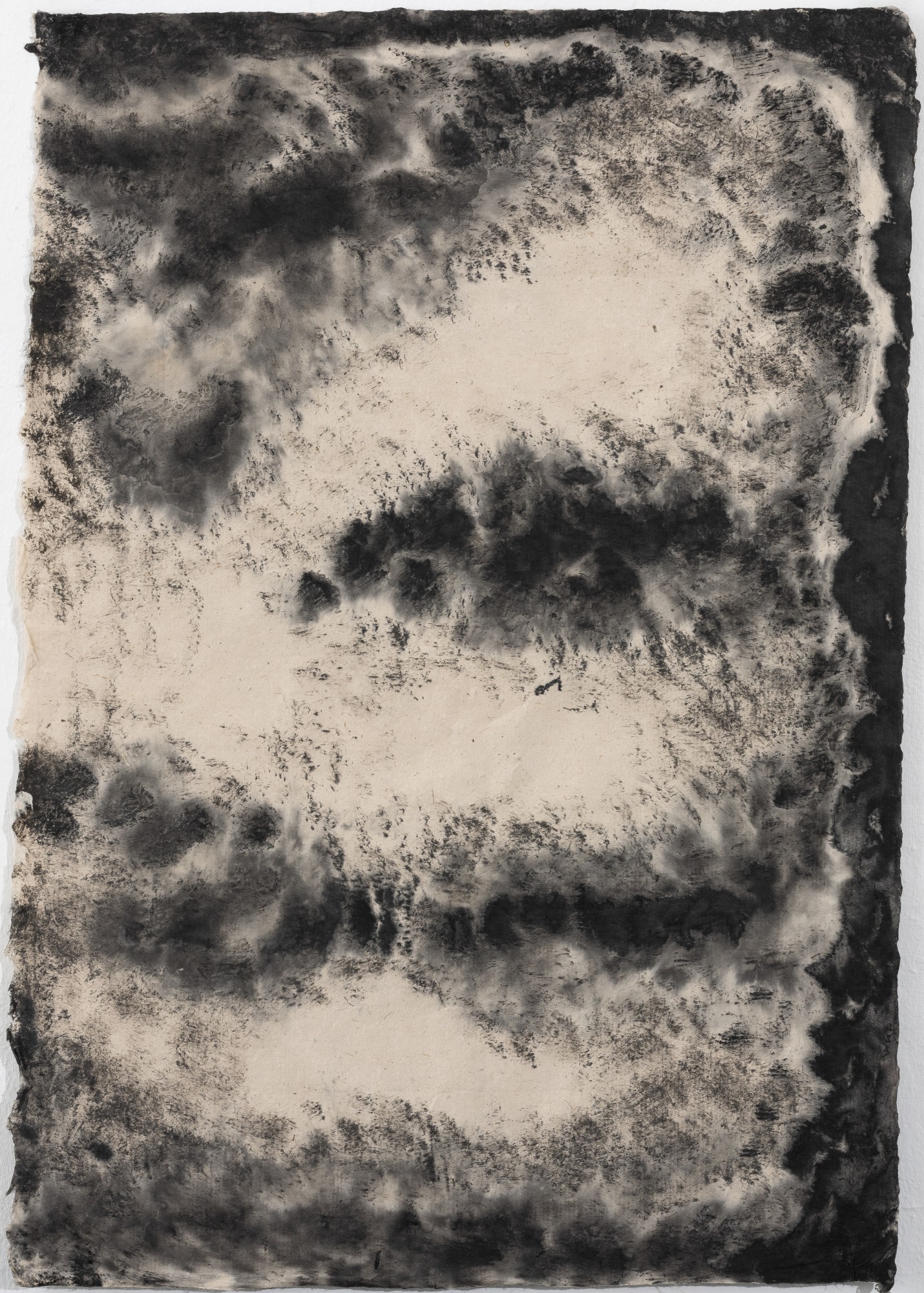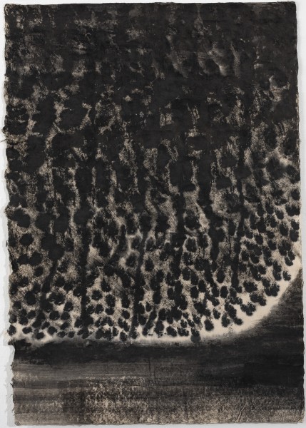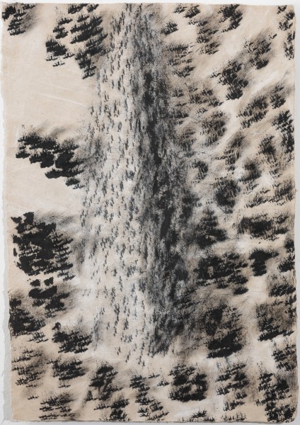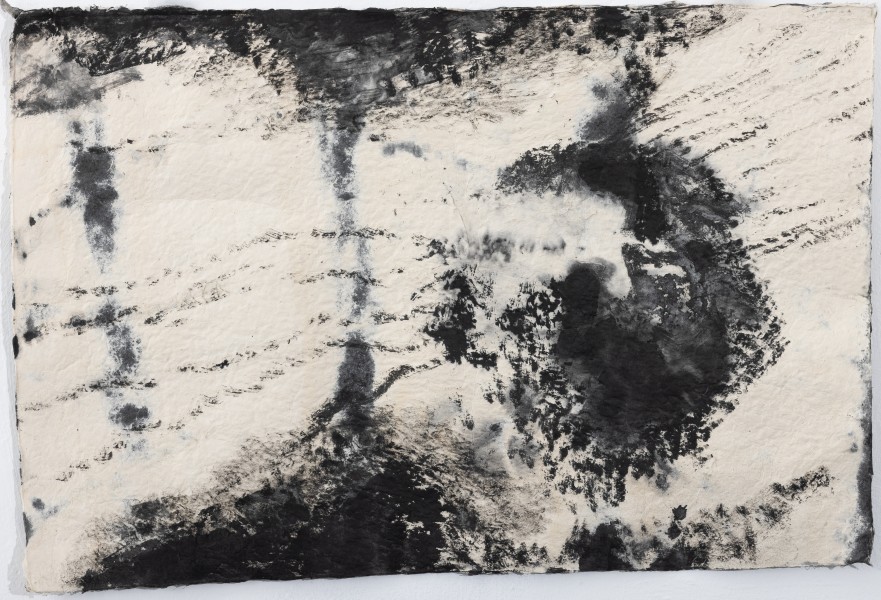 Charcoal and crayon, torn paper and water on paper